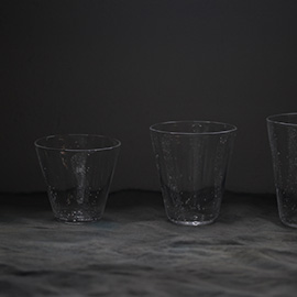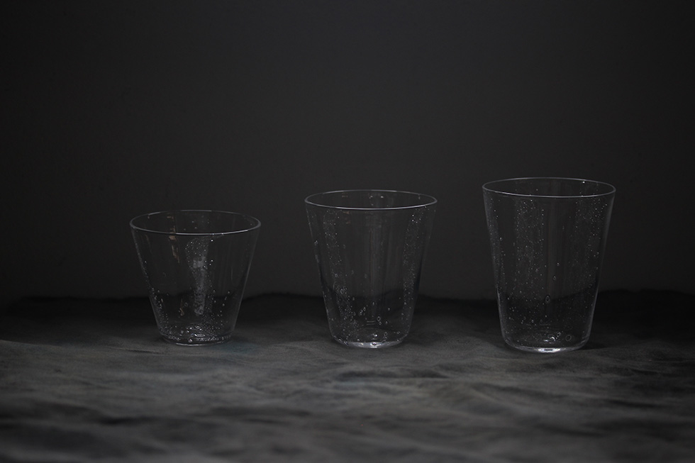 水と光をテーマにして吹きガラス制作をしています。 有機的で流動的なイメージと、 涼やかで気負いのない存在のガラスを目指しています。 日常に寄り添い、 時にはそっと生活に彩りを与えられるような ガラスでありたいです。